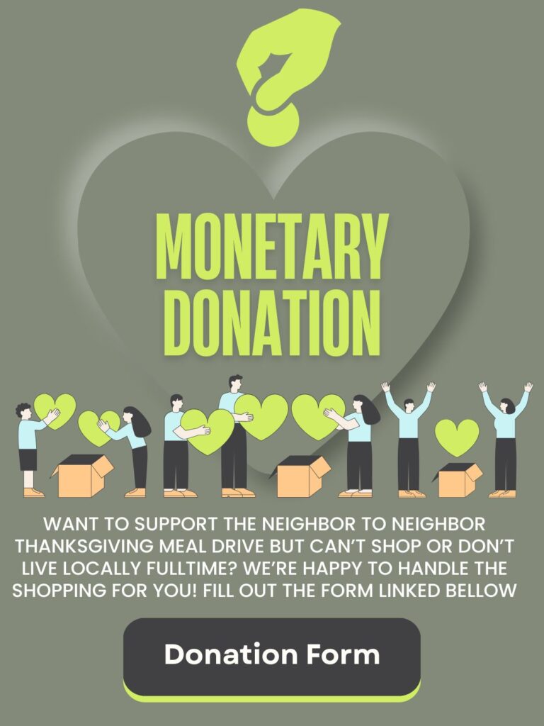 Want to support the Neighbor to Neighbor Thanksgiving Meal Drive but can’t shop or don’t live locally fulltime? We’re happy to handle the shopping for you! Fill out the form linked above and below to make your donation today. Link: https://form.jotform.com/PLPOA/TG2025donation