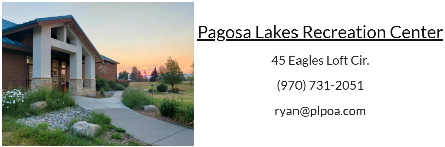 The Pagosa Lakes Property Owners Association Board of Directors will meet with the Archuleta County Board of Commissioners for a Joint Meeting Session on Monday, October 6 beginning at 5:00 p.m. The meeting will be held in the County Commissioners Meeting Room, 398 Lewis Street. The meeting is open to the public and can be attended via zoom. Additional information will be provided once the agenda and zoom link are set.